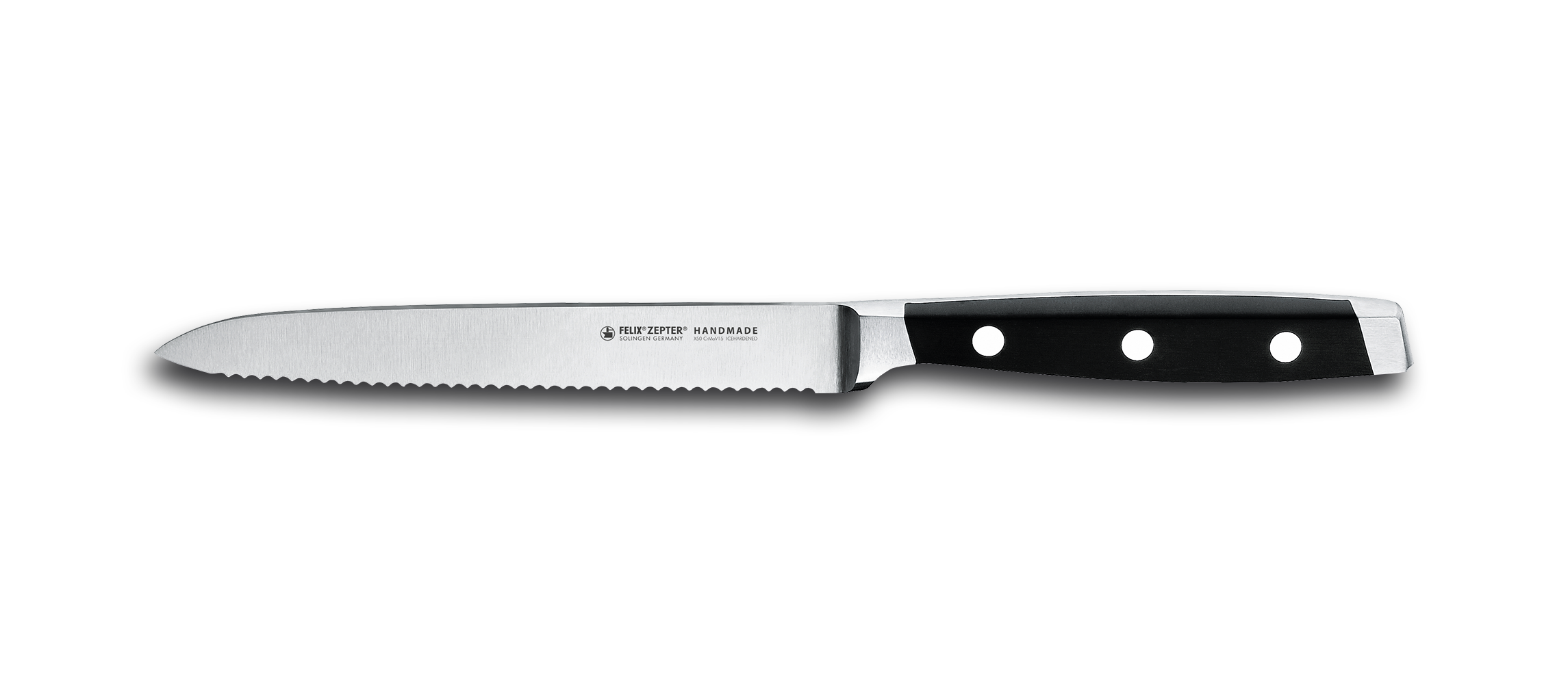 Nooit meer platgedrukte tomaten op de snijplank, met het speciale First Class tomatenmes kunnen flinterdunne plakjes of kleine blokjes worden gesneden zonder dat het een papje wordt. Het 13 cm lange lemmet is geschikt voor iedere soort tomaat.