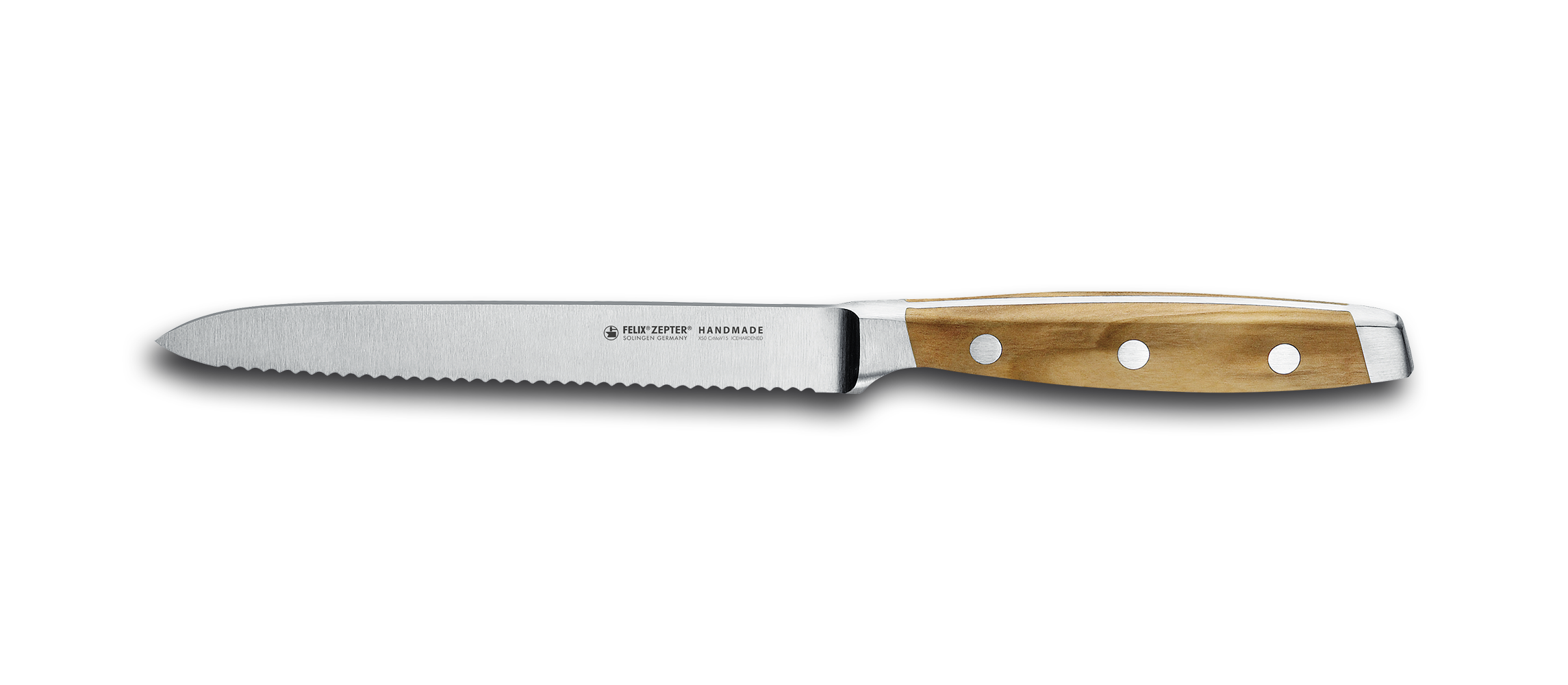 Nooit meer platgedrukte tomaten op de snijplank, met het speciale First Class tomatenmes kunnen flinterdunne plakjes of kleine blokjes worden gesneden zonder dat het een papje wordt. Het 13 cm lange lemmet is geschikt voor iedere soort tomaat.