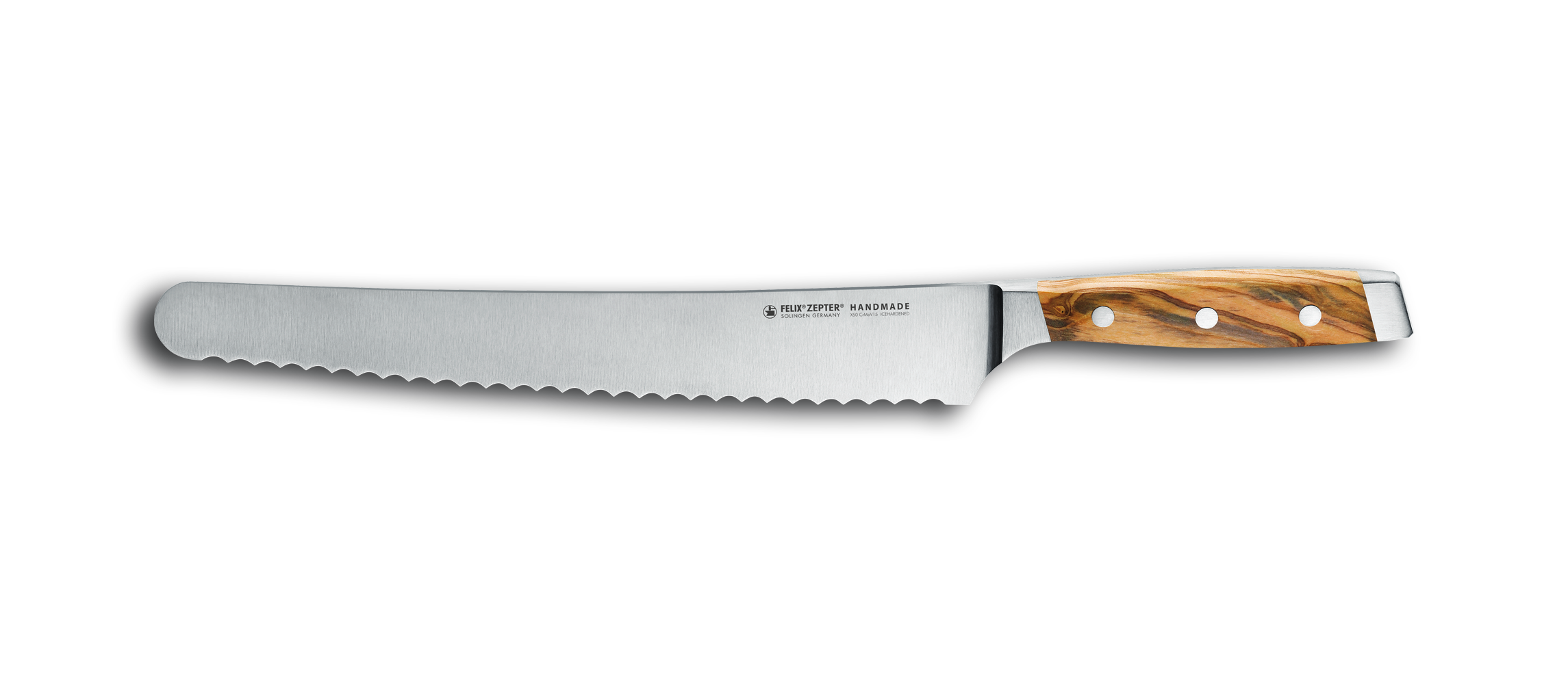 Een klassiek ontwerp voor fans van Italië. Dit First Class Wood broodmes is geproduceerd naar Italiaans model. Het bijzonder lange lemmet (26 cm) en de speciaal gekartelde rand zijn de beste combinatie om harde broodkorstjes gemakkelijk en gelijkmatig door te snijden. De puntige tanden van het mes scheuren door het materiaal, of het nu gaat om boord, fruit met een taaie schil of braadstuk met een dikke korst.