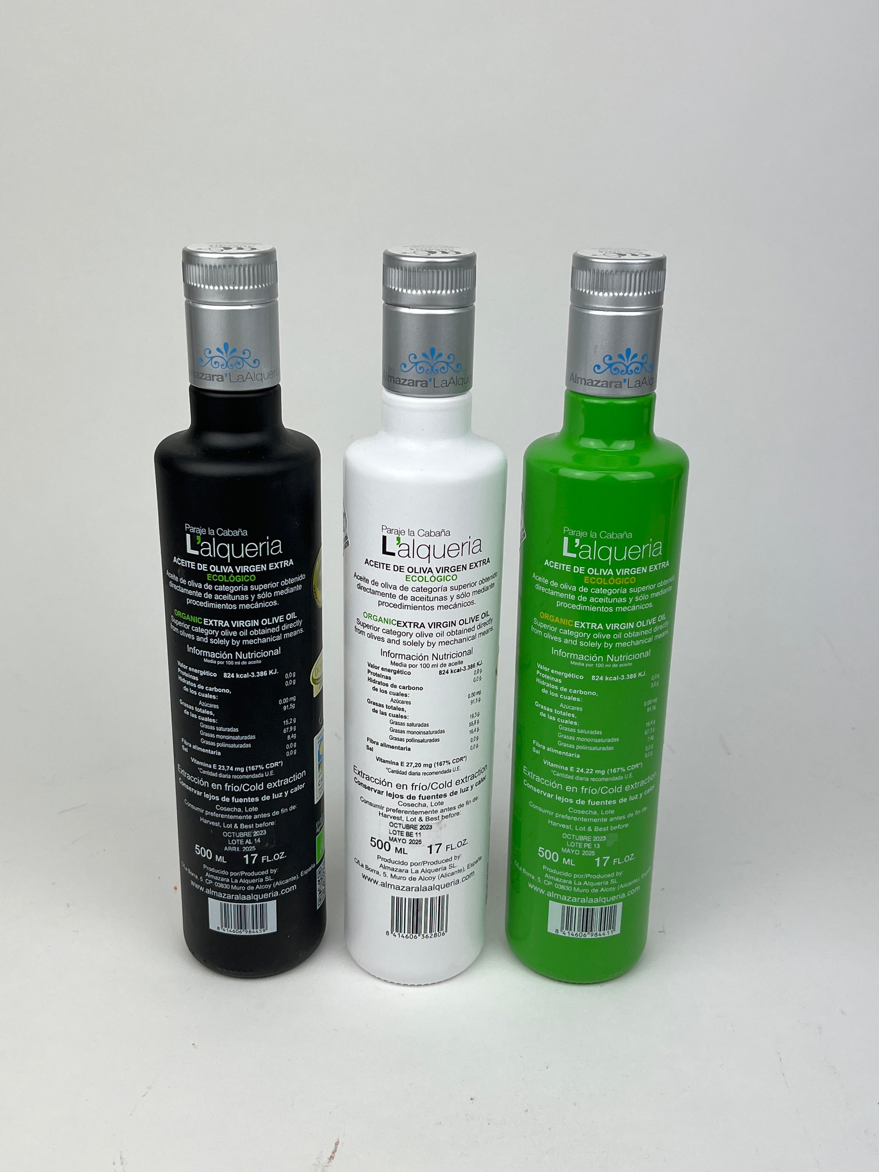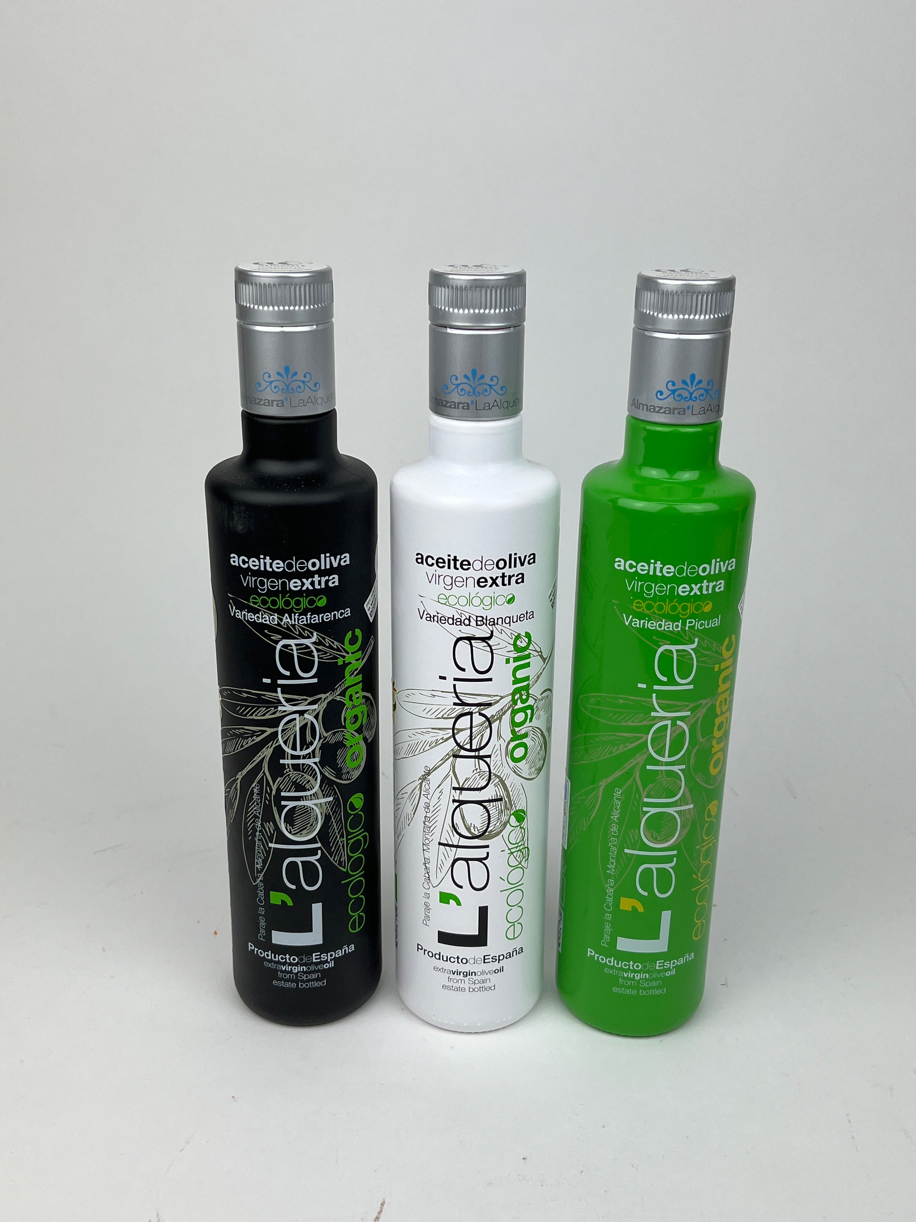 Deze geschenkverpakking bevat drie flessen van elk 500 ml, met één fles van iedere van onze biologische monovariëteit olijfoliën: Blanqueta, Alfafarenca en Picual. Elke olie is koudgeperst, uitsluitend afkomstig van de eerste mechanische persing, en geoogst in de laatste twee weken van oktober in Alicante, Spanje. Een perfecte selectie om de karakteristieke smaken en aroma’s van drie inheemse olijvenrassen te ontdekken.
