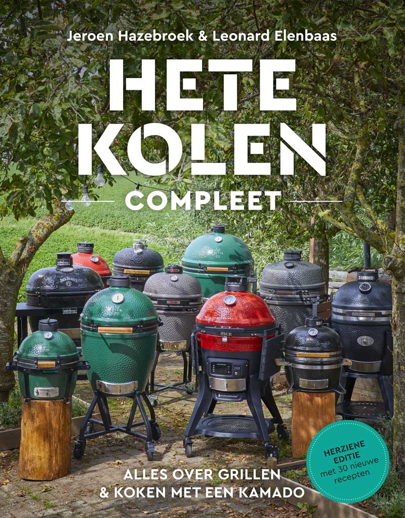 Ons eerste boek Hete Kolen uit 2014 was zo succesvol dat deze 8 keer herdrukt werd. Hete Kolen Compleet was in 2018 de opvolger en is 11 keer herdrukt. Het had alle recepten uit de ‘Hete Kolen’ reeks, maar ook 20 nieuwe recepten en veel nieuwe informatie over de kamado merken. In 2024 hebben we Hete Kolen Compleet nog eens bijgewerkt met de laatste kamado accessoires en ontwikkelingen. Het is in principe nog steeds hetzelfde boek, dat je de oorsprong van de kamado goed uitlegt. Daarna ga je met dit boek stap voor stap via de werking en technieken naar dagelijks koken op de kamado. In het laatste hoofdstuk volgen meer dan 100 recepten, waarvan 25 nieuwe uit 2024.