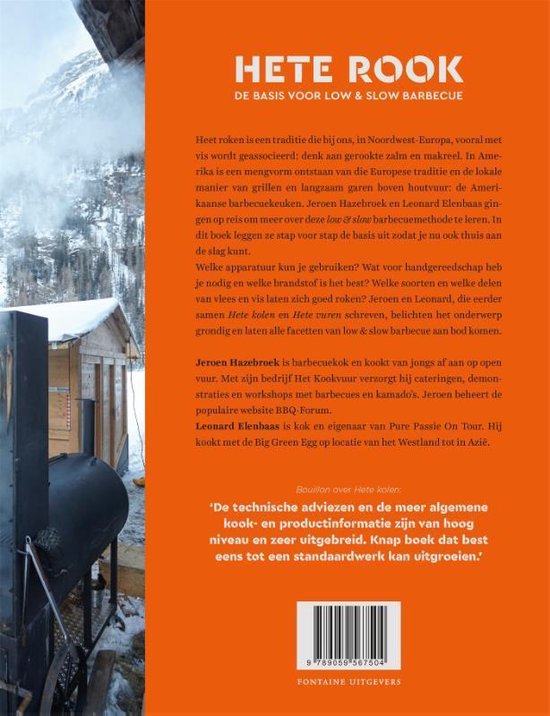 Heet roken is een traditie die bij ons, in Noordwest-Europa, vooral met vis wordt geassocieerd: denk aan gerookte zalm en makreel. In Amerika is een mengvorm ontstaan van die Europese traditie en de lokale manier van grillen en langzaam garen boven houtvuur: de Amerikaanse barbecuekeuken. Jeroen Hazebroek en Leonard Elenbaas gingen op reis om meer over deze low & slow barbecuemethode te leren. In dit boek leggen ze stap voor stap de basis uit zodat je nu ook thuis aan de slag kunt. Welke apparatuur kun je gebruiken? Wat voor handgereedschap heb je nodig en welke brandstof is het best? Welke soorten en welke delen van vlees en vis laten zich goed roken? Jeroen en Leonard, die eerder samen Hete kolen en Hete vuren schreven, belichten het onderwerp grondig en laten alle facetten van low & slow barbecue aan bod komen. Jeroen Hazebroek is barbecuekok en kookt van jongs af aan op open vuur. Met zijn bedrijf Het Kookvuur verzorgt hij cateringen, demonstraties en workshops met barbecues en kamado's. Jeroen beheert de populaire website BBQ-Forum. Leonard Elenbaas is kok en eigenaar van Pure Passie On Tour. Hij kookt met de Big Green Egg op locatie van het Westland tot in Azië.