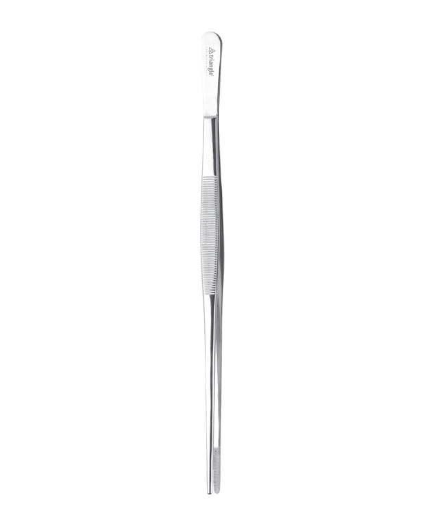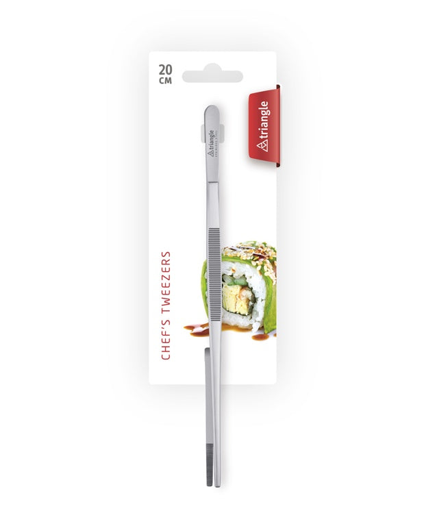 Deze keukenpincet van Triangle is een onmisbaar hulpmiddel in de keuken wanneer u iets meer precisie wilt aanbrengen bij uw gerechten. U kunt de pincet gebruiken om kleine garneringen toe te voegen, maar ook om kleine gerechten zoals canapés op te dienen. De pincet is gemaakt van roestvrijstaal en mag na gebruik in de vaatwasser worden geplaatst voor een goede reiniging.