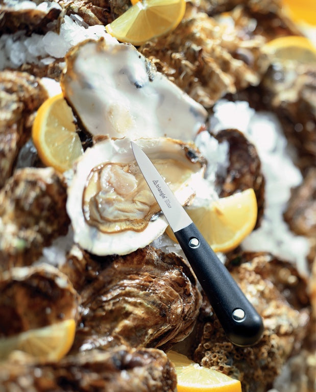Met het oestermes van Triangle kunt u op een gecontroleerde manier oesters openen. Door de punt van het mes voorzichtig in de scharnier te steken en het vervolgens te wrikken, opent u de oester eenvoudig. Het geharde lemmet is aan beide kanten geslepen en dankzij het ergonomische handvat heeft u een stevige grip tijdens het openen. Handwas wordt aanbevolen om de levensduur van het mes te behouden.